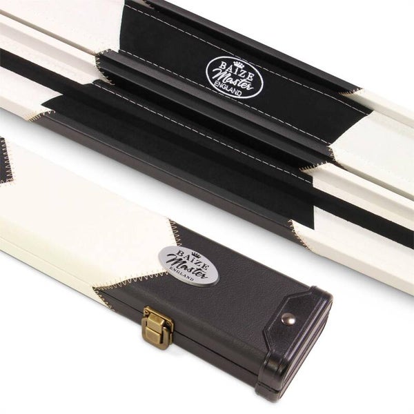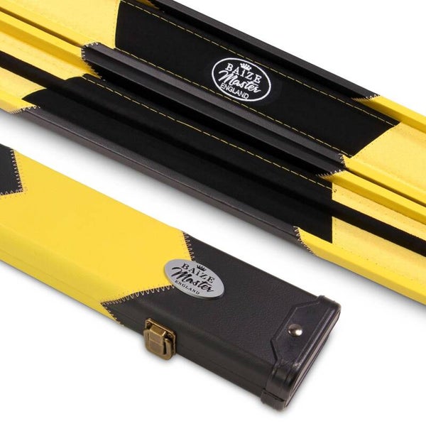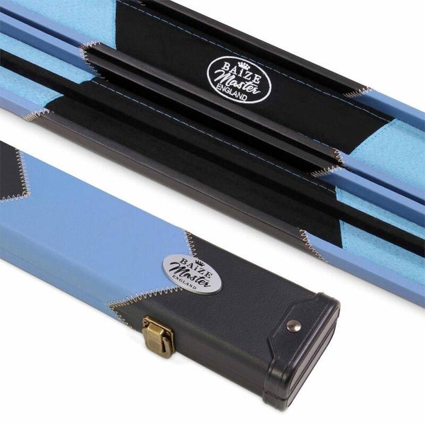 Our deluxe Baize Master cue cases feature chunky plastic ends for improved protection mixed with an eye-catching arrow design for an overall, highly desirable cue case. Combined with an internal chalk compartment and matching colours suede style padded interior – this case offers the perfect blend of stylish looks and practical function. Finished with a quality exterior Baize Master metal badge and debossed logo in the handle.